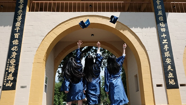 On June 5, 2025, the graduation ceremony for the eighth and twelfth graders of Developing Virtue Secondary School was held in the Confucius Hall at the City of Ten Thousand Buddhas.