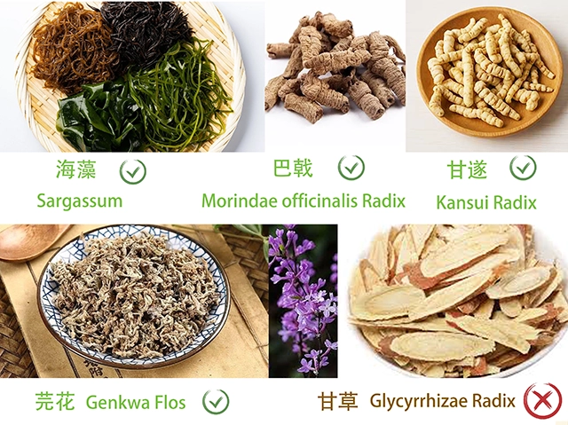 Ze Xie (Alismantis Rhizoma) benefits the water drainage and tonifies Yin deficiency; Hai Zao (Sargassum) scatters goiter, breaks up Qi, and treats difficulties of hernia;