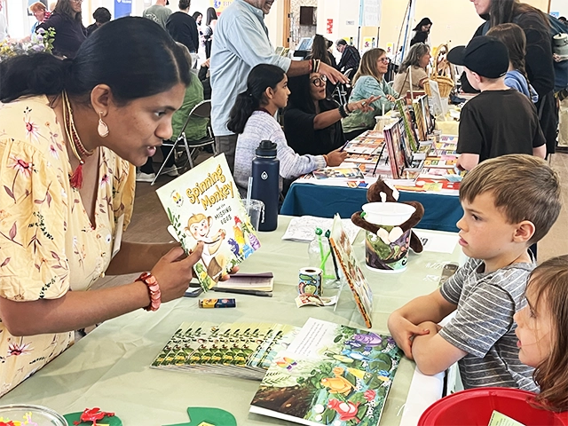 The fair also served as a networking hub for authors, illustrators, and publishers. Eileen Hu, owner of Victory Press, gifted Aniya Bala (the youngest co-author at the fair) a copy of The Legend of Mu Lan—A Heroine of Ancient China with a matching doll. Aniya’s younger brother, inspired, promised to join the family’s book-writing efforts in the future.